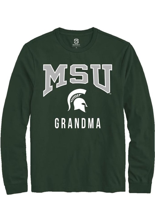 Show your Michigan State Spartans spirit in this MSU Green T Shirt! This MSU Grandma Long Sleeve T Shirt makes a great layer for cooler nights cheering on the Spartans. Featuring a digitally printed graphic, this Michigan State Spartans Long Sleeve Tee is an essential addition for every fan. Go Spartans!
