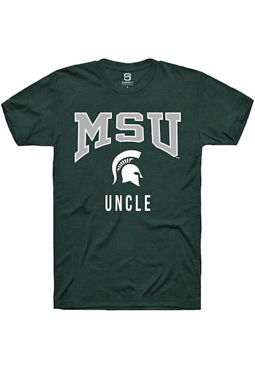 Display your team spirit with this remarkable Michigan State Spartans Green Uncle Short Sleeve T Shirt! The MSU Short Sleeve Tee showcases a digitally printed graphic that truly sets it apart. Stand out from the crowd and proudly declare your allegiance to the Spartans with this exceptional Green MSU T Shirt. Go Spartans!