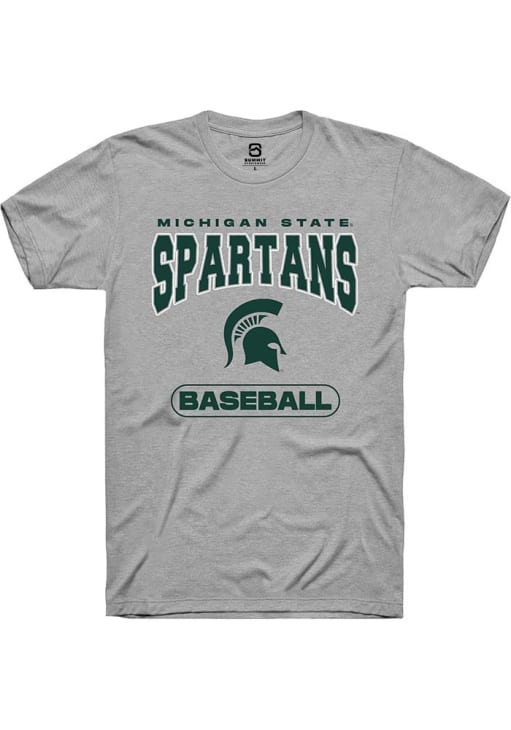 Display your team spirit with this remarkable Michigan State Spartans Summit Sportswear Grey Baseball Short Sleeve T Shirt! The MSU Short Sleeve Tee showcases a digitally printed graphic that truly sets it apart. Stand out from the crowd and proudly declare your allegiance to the Spartans with this exceptional Grey MSU T Shirt. Go Spartans!