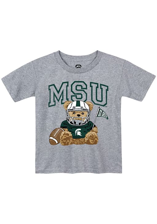 Your future Spartans will be ready to cheer in this Toddler Michigan State Spartans Grey Short Sleeve Tee. This Michigan State Spartans T-Shirt features a screen print team graphic.