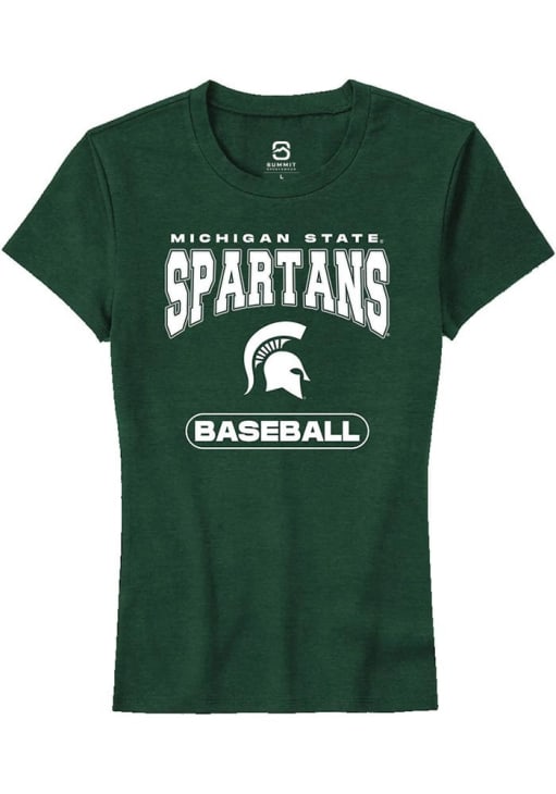Display your team spirit with this remarkable Michigan State Spartans Green Baseball Short Sleeve T-Shirt! The MSU Short Sleeve Tee showcases a digitally printed graphic that truly sets it apart. Stand out from the crowd and proudly declare your allegiance to the Spartans with this exceptional Green MSU T-Shirt. Go Spartans!