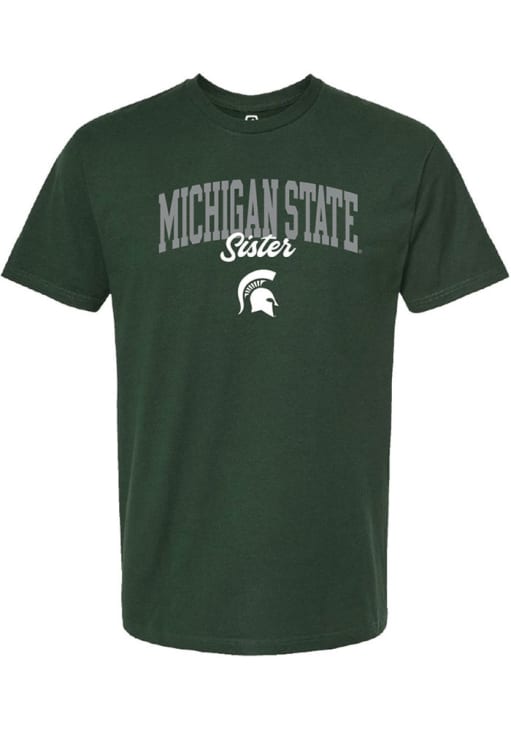 Display your team spirit with this remarkable Michigan State Spartans Green Sister Short Sleeve T-Shirt! The MSU Short Sleeve Tee showcases a screen print team graphic on center chest that truly sets it apart. Stand out from the crowd and proudly declare your allegiance to the Spartans with this exceptional Green MSU T-Shirt. Go Spartans!