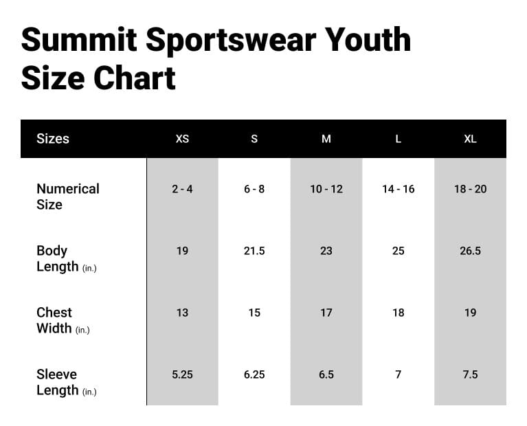 Size Chart for Youth Michigan State Spartans Grey Summit Sportswear Baseball Short Sleeve T-Shirt