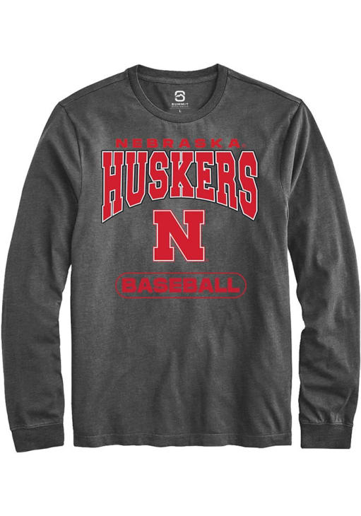 Show your Nebraska Cornhuskers spirit in this Nebraska Charcoal T Shirt! This Nebraska Baseball Long Sleeve T Shirt makes a great layer for cooler nights cheering on the Cornhuskers. Featuring a digitally printed graphic, this Nebraska Cornhuskers Long Sleeve Tee is an essential addition for every fan. Go Huskers!