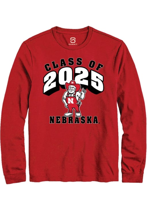 Show your Nebraska Cornhuskers spirit in this Nebraska Red T Shirt! This Nebraska Class of 2025 Long Sleeve T Shirt makes a great layer for cooler nights cheering on the Cornhuskers. Featuring a team graphic, this Nebraska Cornhuskers Long Sleeve Tee is an essential addition for every fan. Go Huskers!