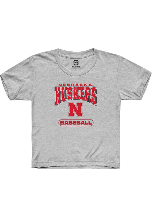 Product Details Product Details Short sleeve teeSide seam constructionPre-shrunkUnisex sizingTear away labelClassic Fit52% Cotton / 48% PolyesterHits At Hip Officially Licensed Your future Nebraska Cornhuskers will be gameday ready in this GreyYouth Short Sleeve Tee. This Baseball T-Shirt features a digitally printed graphic.