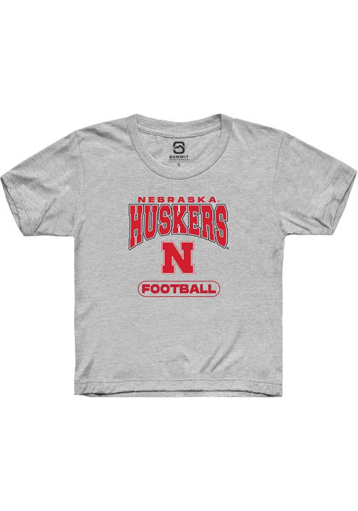 Product Details Product Details Short sleeve teeSide seam constructionPre-shrunkUnisex sizingTear away labelClassic Fit52% Cotton / 48% PolyesterHits At Hip Officially Licensed Your future Nebraska Cornhuskers will be gameday ready in this GreyYouth Short Sleeve Tee. This Football T-Shirt features a digitally printed graphic.