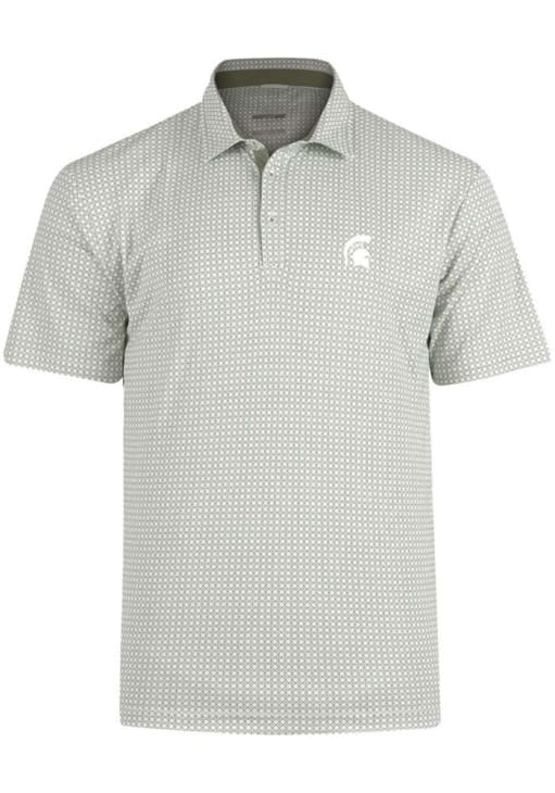 Enhance your professional style with this striking Mens Green Short Sleeve Polo Shirt! Showcase your team pride among colleagues with this exceptional MSU Green Tanner Short Sleeve Polo. Stand out and make a statement in this Michigan State Spartans Short Sleeve Polo, featuring a Team Logo on Left Chest that adds a touch of distinction to your look.