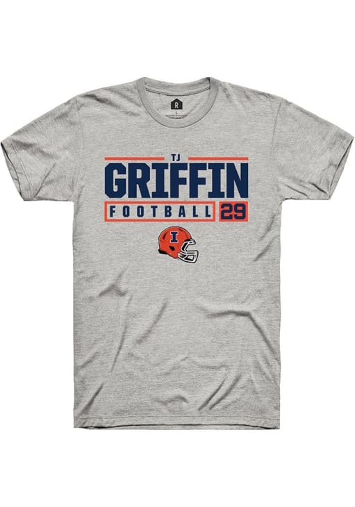 Timothy (TJ) Griffin Ash Illinois Fighting Illini NIL Stacked Box Short Sleeve T Shirt