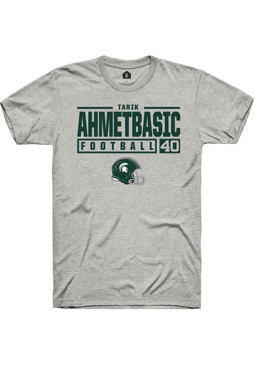 Tarik Ahmetbasic Ash Michigan State Spartans NIL Stacked Box Short Sleeve T Shirt