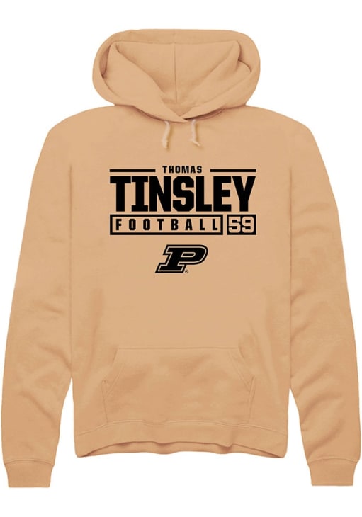 Thomas Tinsley Rally Mens Gold Purdue Boilermakers NIL Stacked Box Hooded Sweatshirt