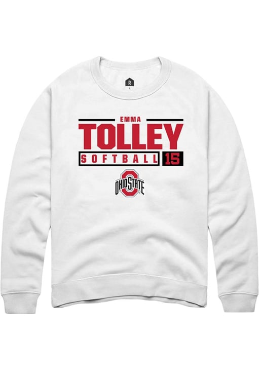 Emma Tolley Rally Mens White Ohio State Buckeyes NIL Stacked Box Crew Sweatshirt