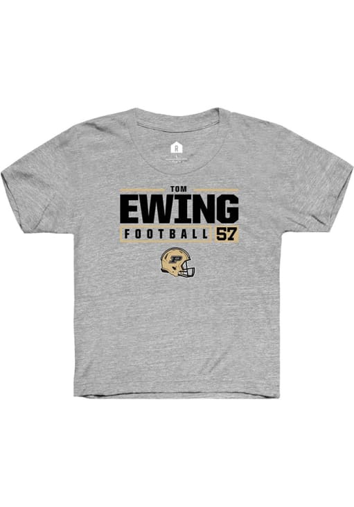 Tom Ewing Rally Youth Grey Purdue Boilermakers NIL Stacked Box Short Sleeve T-Shirt