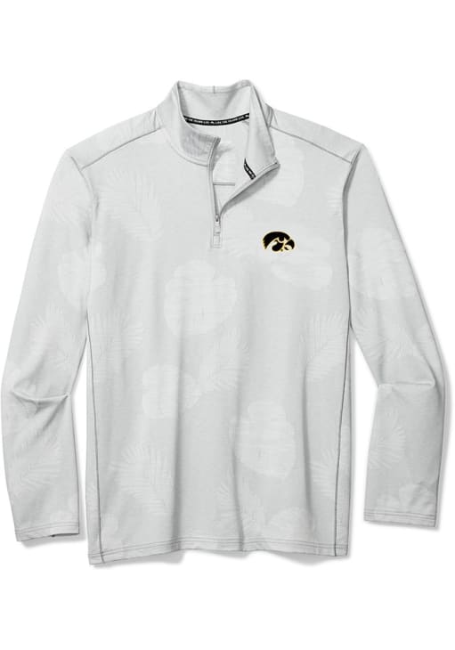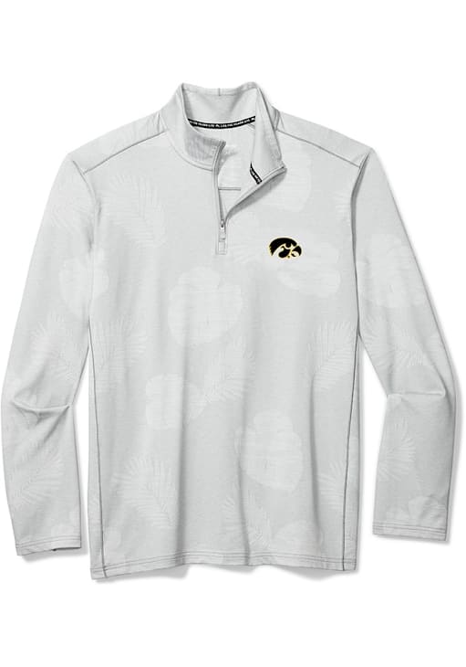 Embrace the warmth and showcase your Hawkeyes pride with our Iowa Hawkeyes Long Sleeve Qtr Zip Pullover. This Mens Grey SPORT DELRAY FROND Long Sleeve Pullover offers a All over frond jacquard with satin stitch details and reflective marlin at back neck for the perfect combination of comfort and style. Elevate your everyday look with this must-have Iowa Hawkeyes Long Sleeve Qtr Zip Pullover.
