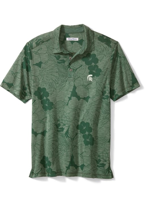 Size Chart for Mens Michigan State Spartans Green Tommy Bahama Miramar Blooms Short Sleeve Fashion Polo
