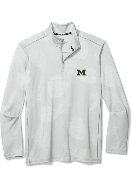 Mens Michigan Wolverines Grey Tommy Bahama Qtr Zip Pullover