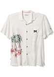 Mens Michigan Wolverines White Tommy Bahama Fly Ball Short Sleeve Dress Shirt