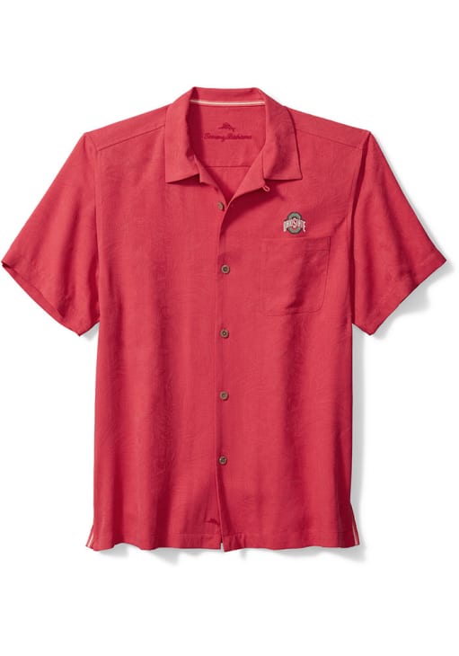 Elevate your style for any occasion with this sophisticated Ohio State Buckeyes Short Sleeve Dress Shirt! Let your Buckeyes pride show in this Red Sport Tropic Isles Camp Button Down Shirt. This Sport Tropic Isles Camp The Ohio State University Dress Shirt is perfect for showing your Buckeyes pride at the office. Featuring a all over tropical jacquard, this Ohio State Buckeyes Dress Shirt has a subtle touch of fan support.