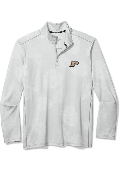 Embrace the warmth and showcase your Boilermakers pride with our Purdue Boilermakers Long Sleeve Qtr Zip Pullover. This Mens Grey SPORT DELRAY FROND Long Sleeve Pullover offers a All over frond jacquard with satin stitch details and reflective marlin at back neck for the perfect combination of comfort and style. Elevate your everyday look with this must-have Purdue Boilermakers Long Sleeve Qtr Zip Pullover.