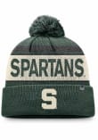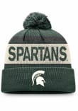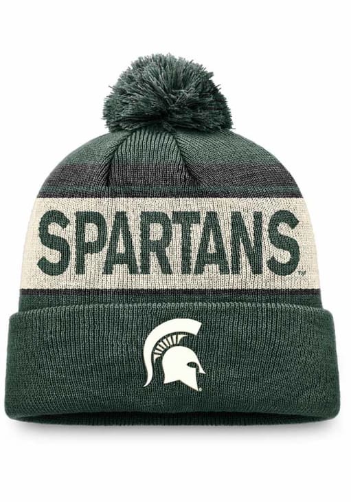 Stay in style during the cold part of the year with this Michigan State Spartans Mens Primary Cream Stripe Cuff Pom Knit Hat! You can show your Spartans spirit with this Knit Hat that features a front cuff logo with a crown team name stripe design and pom on top.