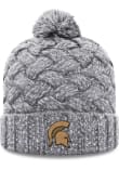 Keep your Spartans fandom going with this Michigan State Spartans Womens Primary Patch Cuff Pom Style Knit Hat from Rally House! You'll be glad to have this Knit Hat, as it features a front cuff leather patch with a heather gray crown with pom on top.