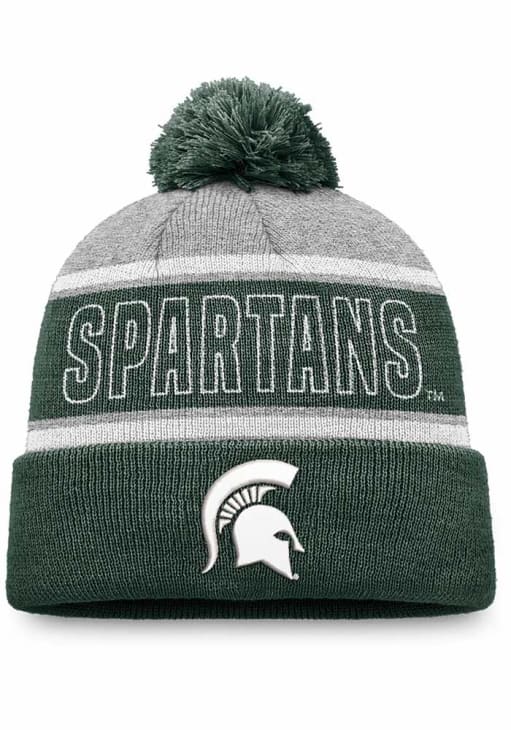 Stay in style during the cold part of the year with this Michigan State Spartans Mens Primary Stripe Crown Cuff Pom Knit Hat! You can show your Spartans spirit with this Knit Hat that features a front cuff logo with a crown team name stripe design and pom on top.