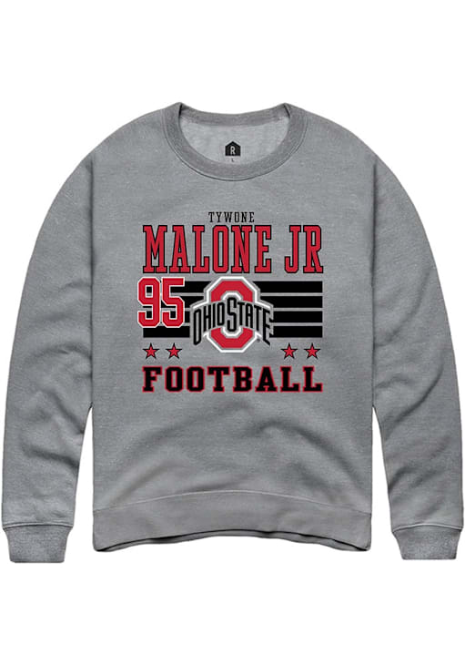 Support your Ohio State Buckeyes and favorite Tywone Malone jr in this Ohio State Buckeyes Mens Grey Football NIL Striped Player Crew. This Crew Sweatshirt features a NIL graphic, and is sure to stand out in the stadium. Perfect to wear on game day or any day!