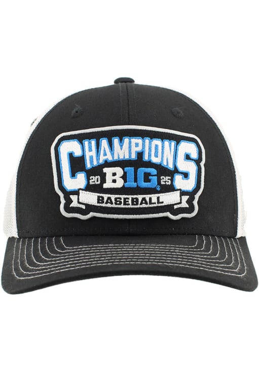 Product Details Product Details Zephyr 2025 Big Ten Baseball Champs LR Dakota TruckerFront embroidered 2025 Big Ten Baseball Champs patchTrucker mesh on side and back panelsSide Zephyr logoBack plastic snap closurePOLYESTERCurved BillLow CrownStructuredWipe clean with cloth or cleaning kitImported Officially Licensed This Black Bruins Adjustable Hat features a front embroidered 2025 Big Ten Baseball Champs patch.