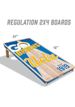 Product Details Product Details Each board measures 2 ft x 4 ftEasy TransportPerfect for tailgating!Great way to support your favorite team!Great gift! Officially Licensed Hit your next Bruins tailgate with this UCLA Bruins Corn Hole. You and your friends can have some fun before the Bruins play with this Corn Hole, which features a team logo on team colored background.
