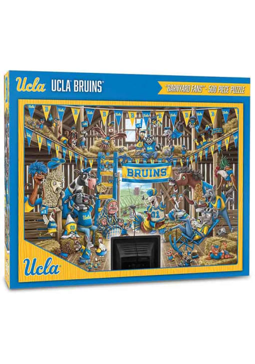 Product Details Product Details Finished puzzle size 18" x 24"500 piecesGreat gift for fans of any ageOfficial team logo and colorsCardboard materialOriginal artwork Officially Licensed Give yourself a challenge putting together this UCLA Bruins 500pc Barnyard Fans Puzzle. This Puzzle features a team logo.