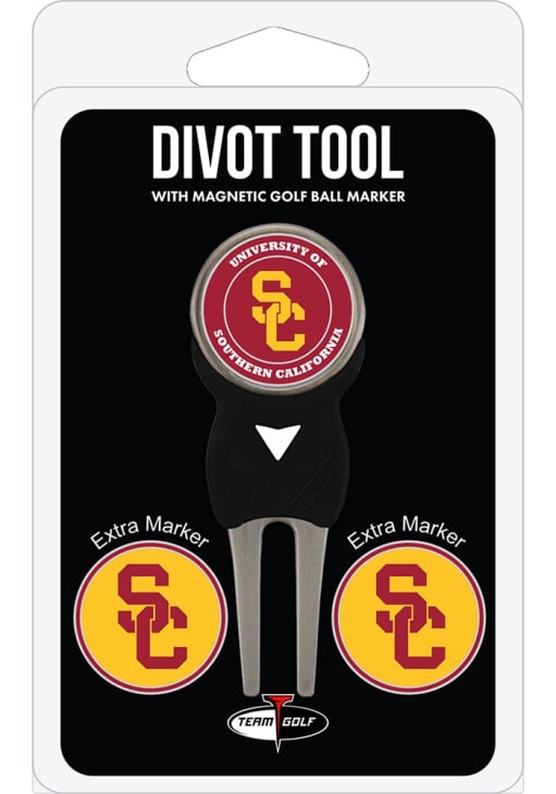 Product Details Product Details Retractable toolLightweightDouble sided ball markersMagnetic markerMETAL Officially Licensed USC Trojans 3 Pack Ball Marker Divot Tool is a great way to show your Trojans pride on the golf course. This Divot Tool features a team logo on team color background. Fight On, Trojan!