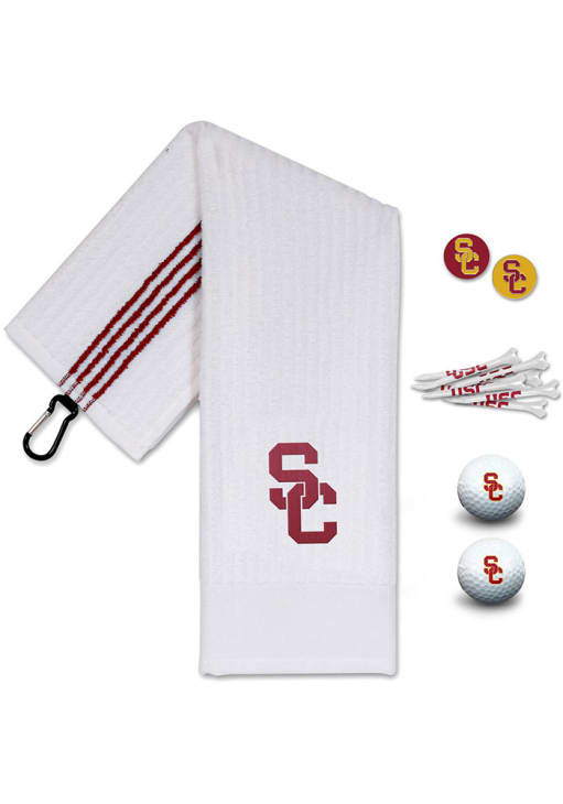 Product Details Product Details Golf towel with carabiner attachment2 alternate color ball markersTeam logo golf tees2 pack team logo golf ballsPerfect gift for any sports fan Officially Licensed USC Trojans 4 Pack Golf Gift Set is the perfect gift for your favorite Trojans golfer. This Golf Gift Set features a team logo. Fight On, Trojan!