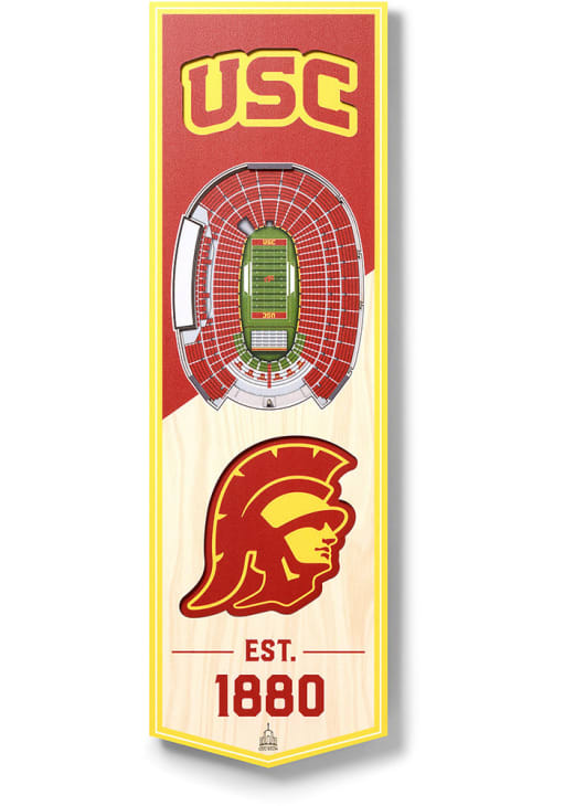 Product Details Product Details 6x19 inchesFeatures a 3D StadiumTeam colors and logoWood materialGreat way to show off your team spirit!WOOD Officially Licensed This USC Trojans 6x19 inch 3D Stadium Sign is great for decorating your home Trojans team spirit. Take your team spirit to the next level with this Sign, which features a team logo. Fight On, Trojan!