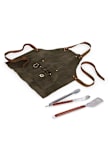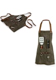 Product Details Product Details Sturdy khaki waxed cotton canvas apron with neck and waist strapsApron has multiple pocketsMetal towel ringLeatherette strap with loops for toolsIncludes wood and stainless steel BBQ Spatula and TongsPolyester ToteImported Officially Licensed USC Trojans Apron Set will show your {Mascot Alia} pride. This Apron Set features a team logo and will look great at any tailgate. Fight On, Trojan!
