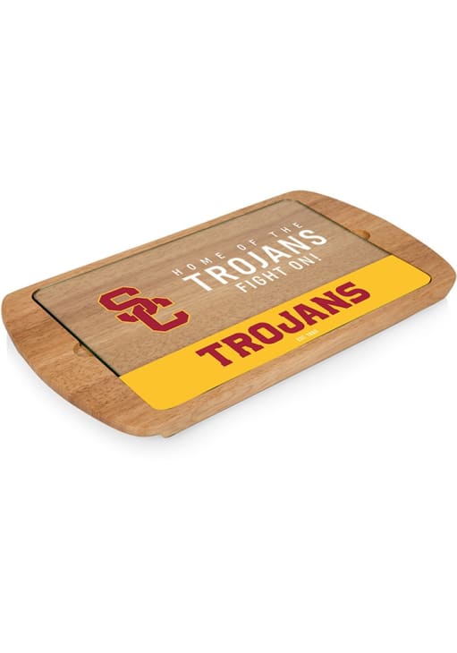 USC Trojans Brown Picnic Time Billboard Glass Top Serving Tray