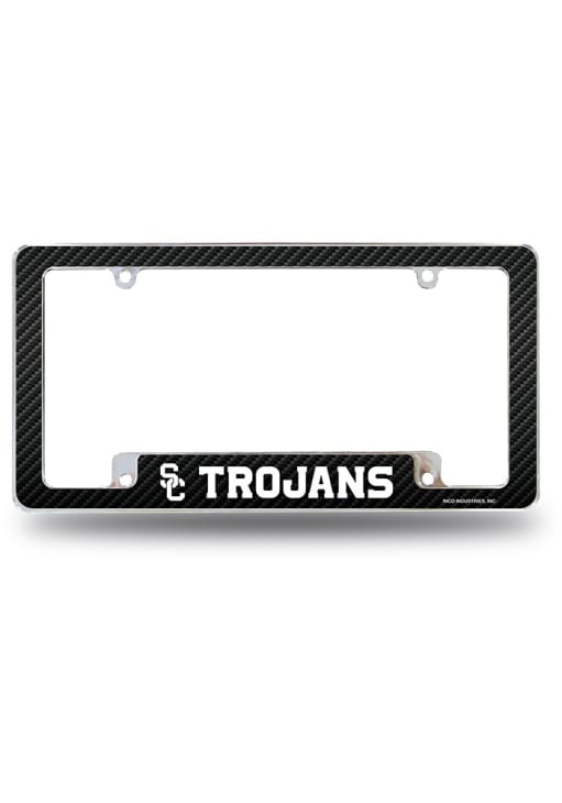 Product Details Product Details Molded chrome plated frameLaser cut inlaysTwo mounting holes at the top of the frameFits most U.S. standard sized license platesDurable and long-lasting license frameImported Officially Licensed This Trojans License Plate Holder features a team logo and team color.