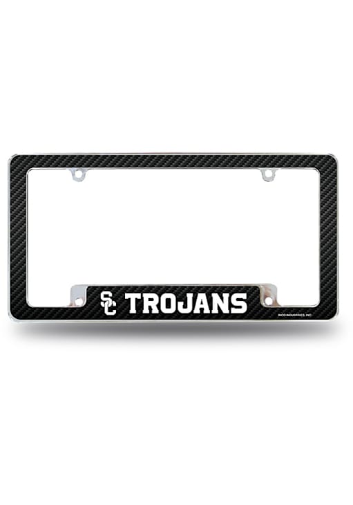 Silver USC Trojans Carbon Fiber All Over Chrome License Plate Frame