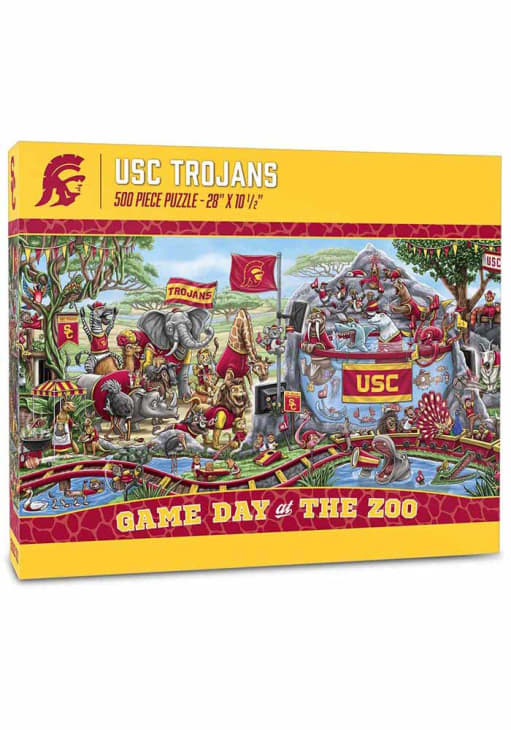 Product Details Product Details 10.5"x28" when completed500 piecesOriginal artworkCardboard materialGreat gift for fans of any age Officially Licensed Give yourself a challenge putting together this USC Trojans Game Day at the Zoo Puzzle. This Puzzle features a team logo.