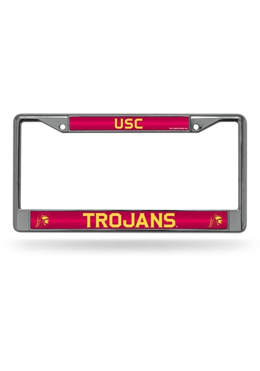 Product Details Product Details Molded chrome plated frameHigh quality screen printed graphicsGlitter detailingTwo mounting holes at the top of the frameFits most U.S. standard sized license platesMETALImported Officially Licensed This Trojans License Plate Holder features a team logo and team colors.