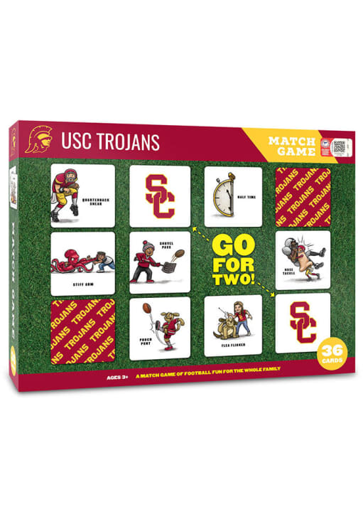 Product Details Product Details 36 2.5" x 2.5 " cardsTeam-specific illustrationsFun for the whole familyFor fans of all ages36 pieces Officially Licensed Have fun and show support for your team with this USC Trojans Memory Match Game. This Game features a illustrations featuring your favorite team for hours of Trojans fun.