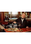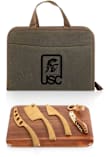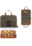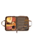 - Inside pockets on one side contain solid satin brass-toned cheese and wine tools