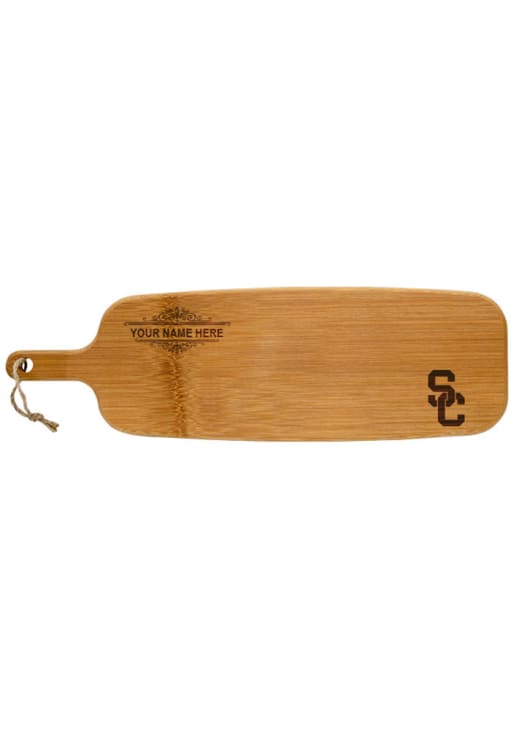 Your friends and family will love the Trojans snacks you make with this USC Trojans Personalized Bamboo Paddle Cutting Board. Celebrate your favorite team with the perfect snacks using this Cutting Board, which features a beautifully laser etched team logo and graphics.