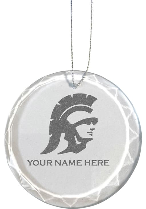 Decorate your Trojans tree this holiday season with this USC Trojans Personalized Etched Glass Ornament. Add USC features to your holiday cheer. This Ornament features a beautifully laser etched team logo and graphics. Fight On, Trojan!