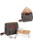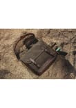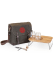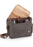 - Insulated waxed canvas with leatherette closing straps and an adjustable fabric shoulder strap