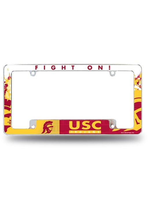 Silver USC Trojans Primary All Over Chrome License Plate Frame