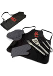Product Details Product Details Folds into easy-to-carry toteAdjustable shoulder strapTote folds out in to apron with team logoDeluxe BBQ set stored in side3 stainless steel BBQ toolsComes with chef's hatPerfect for barbecues, picnics, and campingPolyester ToteImported Officially Licensed USC Trojans Apron Set will show your {Mascot Alia} pride. This Apron Set features a team logo and will look great at any tailgate. Fight On, Trojan!