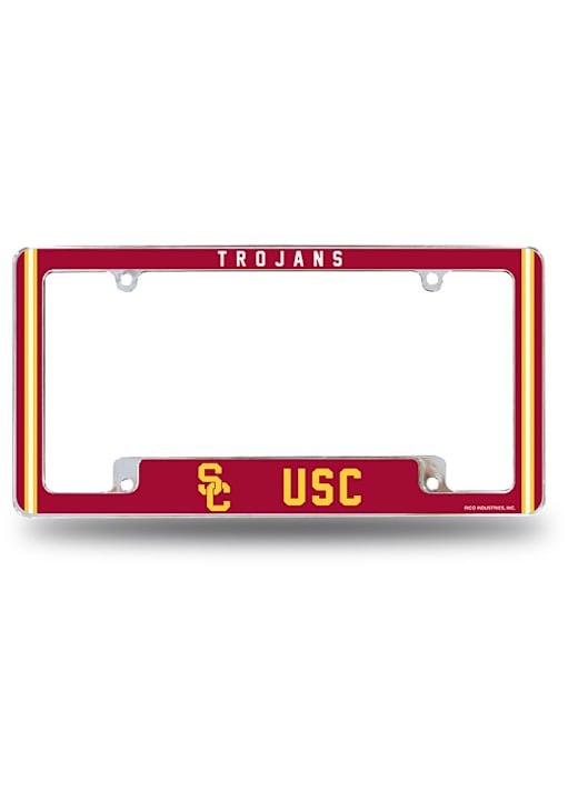 Product Details Product Details Molded chrome plated frameLaser cut inlaysTwo mounting holes at the top of the frameFits most U.S. standard sized license platesDurable and long-lasting license frameImported Officially Licensed This Trojans License Plate Holder features a team logo and team color.