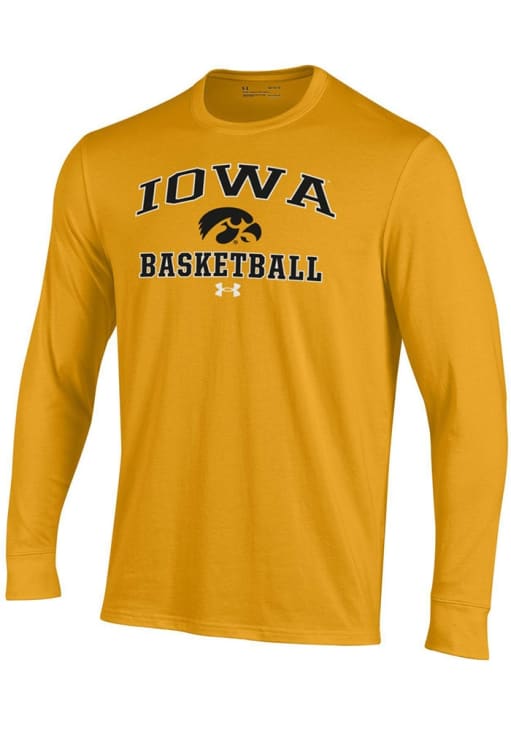 Show your Iowa Hawkeyes spirit in this Hawkeyes Gold T Shirt! This Hawkeyes Basketball Performance Long Sleeve T Shirt makes a great layer for cooler nights cheering on the Hawkeyes. Featuring a screen print graphics, this Iowa Hawkeyes Long Sleeve Tee is an essential addition for every fan. Go Hawkeyes!