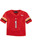 Product Details Product Details Screen print logo and numbersLooser cut for full comfort100% POLYUnder Armour logo left chestPerfect for any young sports fan!100% POLYESTERMachine WashableImported Officially Licensed Every young Maryland fan needs a Baby Red Maryland Terrapins Football Jersey! This Maryland Jersey features a screenprint team graphic. Dress up your little Terrapins for gameday!