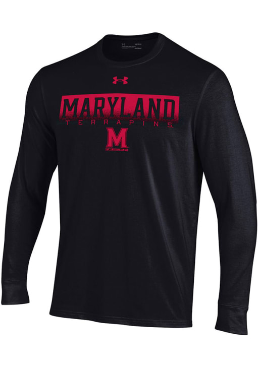Show your Maryland Terrapins spirit in this Maryland Black T Shirt! This Maryland Flat Name Mascot Perf Cotton Long Sleeve T Shirt makes a great layer for cooler nights cheering on the Terrapins. Featuring a team name and mascot screenprinted on front chest, this Maryland Terrapins Long Sleeve Tee is an essential addition for every fan. Go Terps!